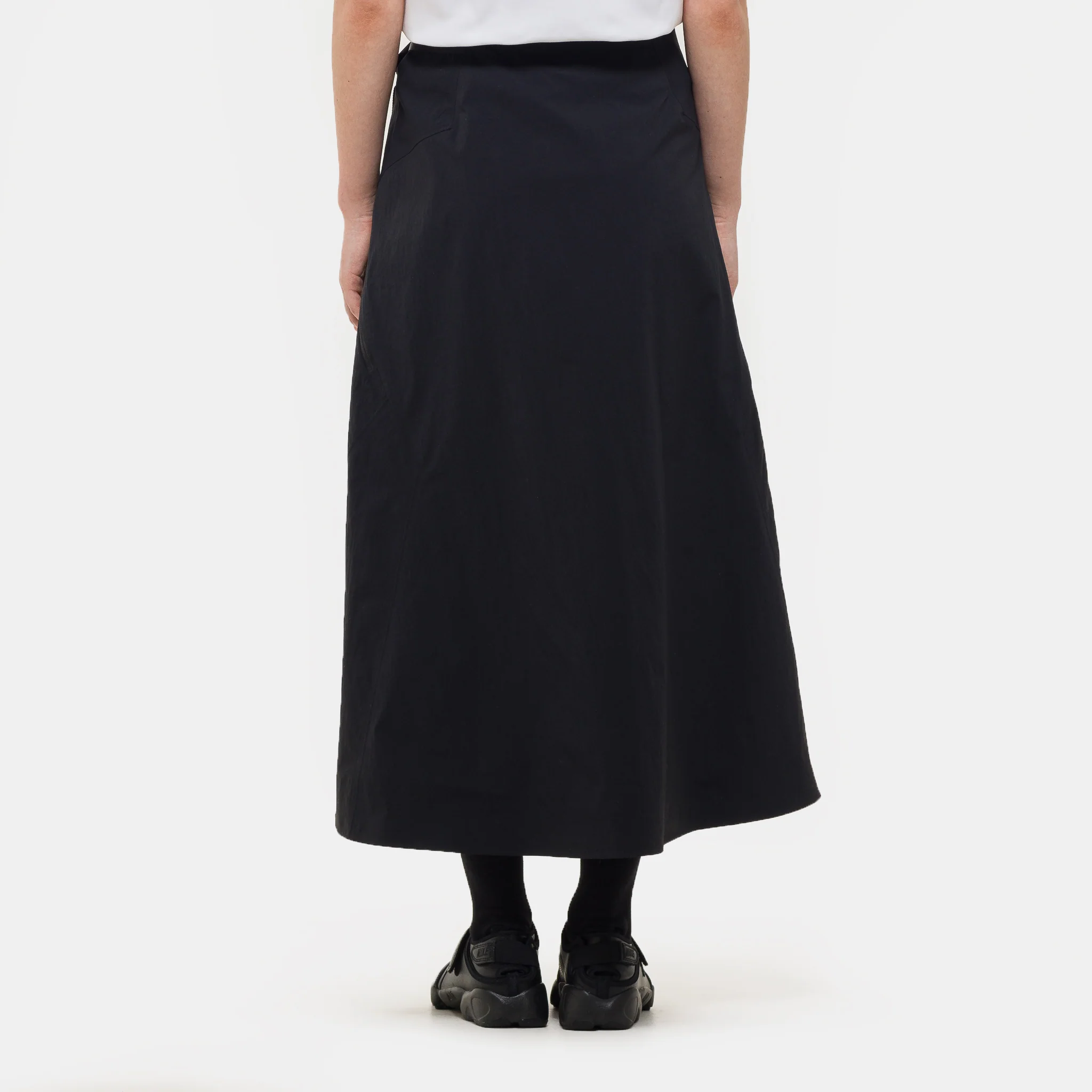 Arc'teryx Veilance skirt in black. Features regualr fit, recycled TerraTex stretch nylon, and finished taped seams.