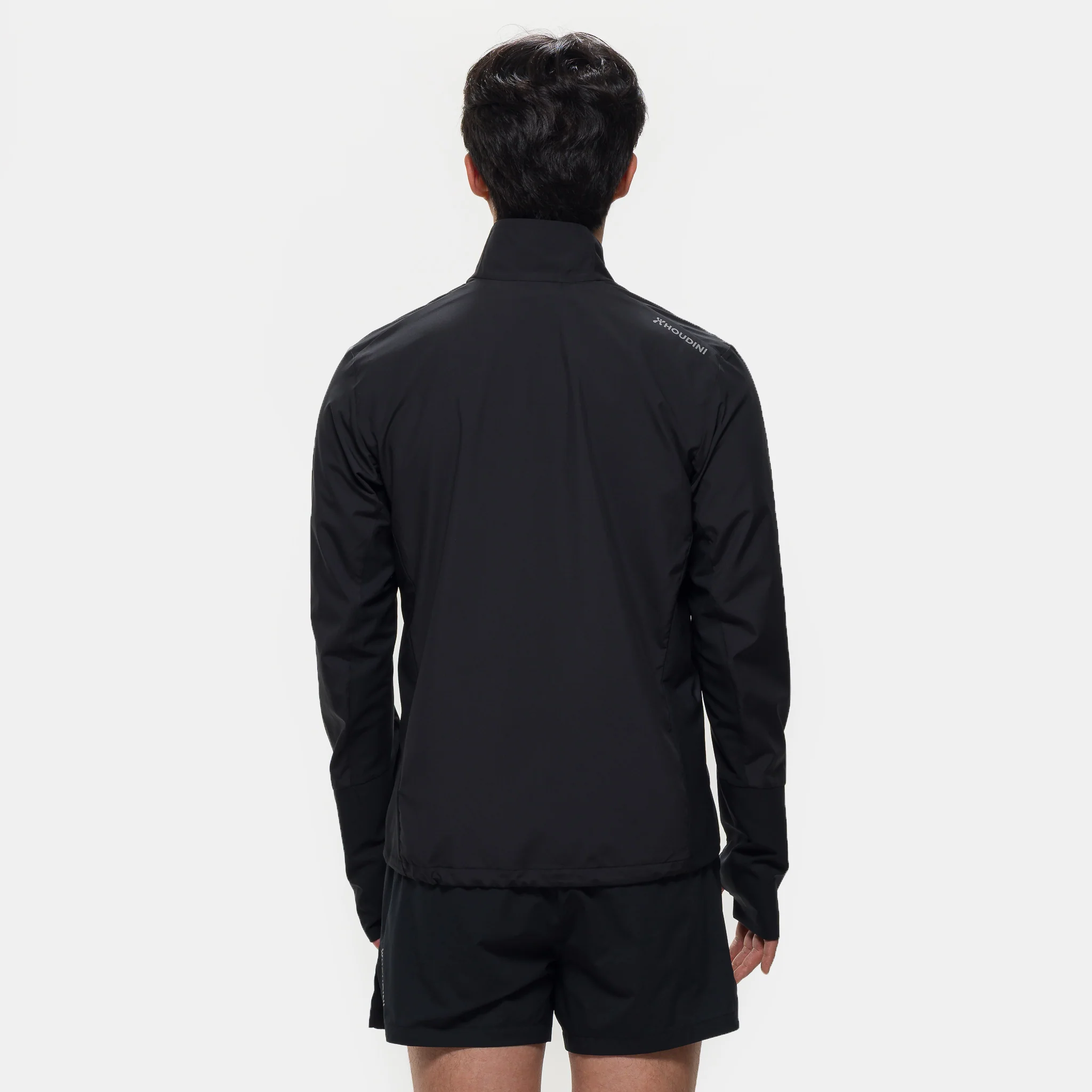 Houdini men's standard fit black lightweight jacket. Features 70% recycled C9 ripstop and Wishwoven construction, quick-drying, and wind and water resistant.